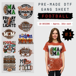 Elevate your game with our Football Pre-Made Gang Sheet! Each sheet features 10 ready-to-press designs, each measuring 10-11 inches. Perfect for pressing onto your favorite jerseys or gear, our DTF gang sheet will take your football spirit to the next level. Get yours now and show off your team pride!