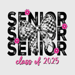 This stylish leopard print “Senior” transfer combines chic patterns with bold fonts, creating a trendy look for the Class of 2025. Perfect for fashion-forward seniors, this design works great on t-shirts, jackets, or accessories. Add a touch of glam and excitement to your senior year with this design.