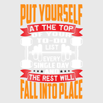 Reach the top with this motivational "Put Yourself at the Top" design. It fits well on workout gear, reminding you that hard work and dedication will always lead to success. A great transfer for fitness lovers who constantly strive for improvement.
