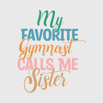 Celebrate the bond between siblings with this cute and cheerful "My Favorite Gymnast Calls Me Sister" transfer. Perfect for gym gear, tank tops, or casual wear, this design is a great way to show love for your gymnastics sibling.