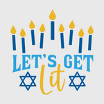 A humorous and modern design featuring a menorah with the playful phrase "Let’s Get Lit," perfect for casual holiday outfits. Ideal for festive t-shirts or sweaters, it brings a fun twist to Hanukkah celebrations.