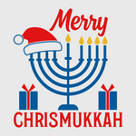 This festive design blends Christmas and Hanukkah elements with a menorah wearing a Santa hat, perfect for those celebrating both holidays. Ideal for novelty shirts or cozy holiday sweaters.