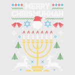A minimalist yet beautiful design featuring a Menorah and holiday trees. Perfect for more subtle Hanukkah apparel, this design fits well on casual wear like hoodies or simple tees.