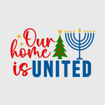 Celebrate unity and togetherness with this "Our Home is United" Hanukkah design. Great for family gatherings, it fits perfectly on cozy apparel like sweaters or long-sleeve shirts.