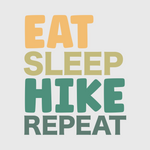 For those who live by this mantra, the "Eat Sleep Hike Repeat" transfer is the perfect addition to your hiking gear. Ideal for t-shirts or sweatshirts, this design represents the ultimate outdoor lifestyle. Keep the adventure going with this stylish and motivational piece.
