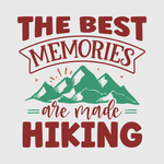 Cherish your outdoor memories with "The Best Memories Are Made Hiking" transfer. Add this to your favorite hiking t-shirts, hoodies, or backpacks. It’s a heartfelt design that resonates with those who find joy in every step of the trail, making it perfect for adventurers.