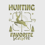 For those who live for the thrill of the hunt, the "Hunting Is My Favorite Season" transfer is a perfect match. Add it to your hunting jackets or shirts to let everyone know what time of year you look forward to the most. An ideal design for passionate hunters.