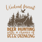 This "Weekend Forecast Deer Hunting" transfer is perfect for hunters who know exactly what their weekends are for. Ideal for outdoor gear like jackets or caps, this design combines hunting with a bit of fun. A great addition for those weekend warriors.