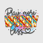 With playful typography and bright colors, this design reminds you to focus on fun and let go of stress. Ideal for casual tops or loungewear, this transfer adds a lighthearted touch to your wardrobe. Bring more joy into your day with this cheerful design.