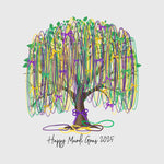 A beautiful, whimsical tree draped in purple, green, and gold beads. This artistic t-shirt design is great for lovers of Southern charm and Carnival cheer.