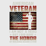 Show your humility with the "American Veteran Not a Hero" transfer. The simple, bold design with a silhouette and flag makes it perfect for any clothing. Wear it to display your pride in service while remaining humble about the heroism veterans represent.