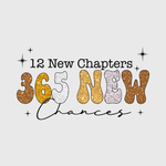 Embrace the opportunities of the new year with this motivational design featuring "12 new chapters, 365 new chances." Perfect for casual or activewear, this transfer is ideal for starting 2025 with positivity and intention. Inspire yourself and others with this uplifting design.