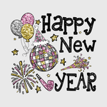 Celebrate with joy using this "Happy New Year" design featuring colorful balloons and festive decorations. Ideal for party wear or casual attire, this transfer brings the excitement of the new year to your wardrobe. Perfect for adding a touch of fun to your 2025 celebrations.