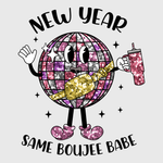 Featuring a fun, animated party ball and "2025," this playful design is perfect for casual New Year’s Eve outfits. Ideal for t-shirts or hoodies, this transfer adds a lighthearted and festive touch to your wardrobe. Start the year with fun and cheer in this vibrant design.