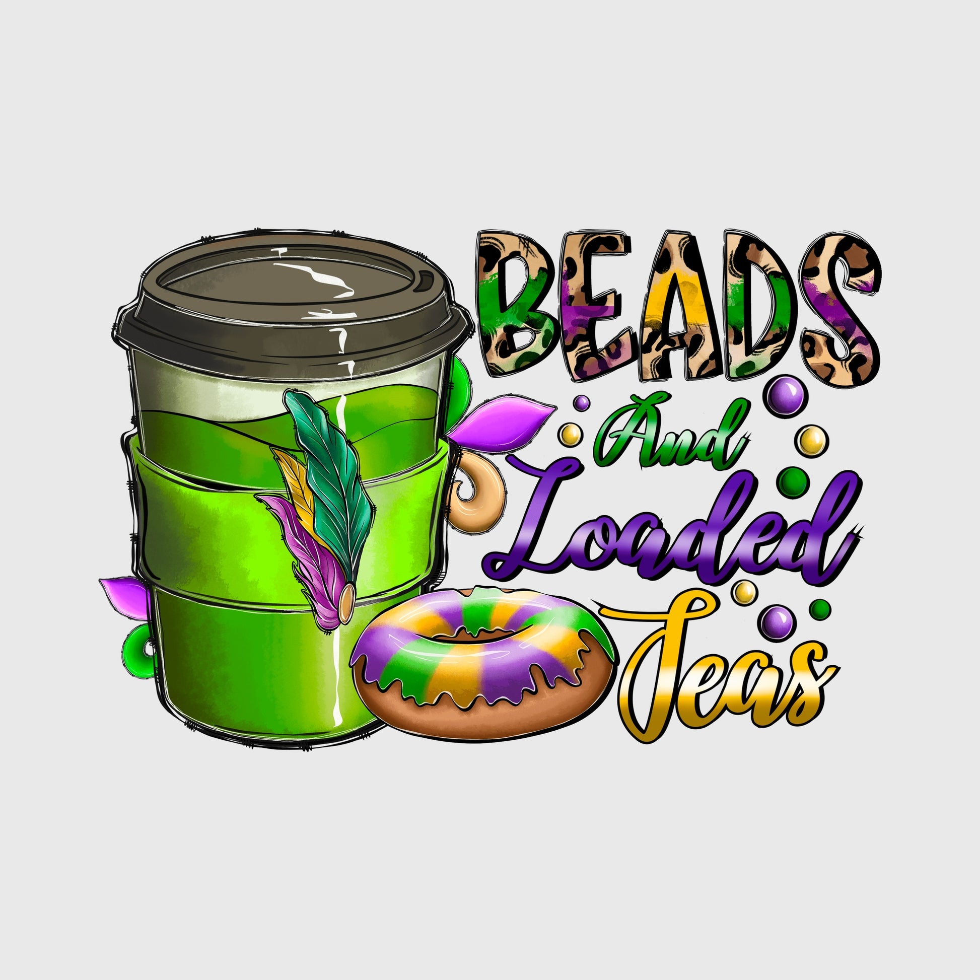 This festive design blends the energy of Mardi Gras with the charm of Southern tea culture. Perfect for t-shirt designs that mix sparkle, sass, and caffeine—all in one Mardi-ready look.