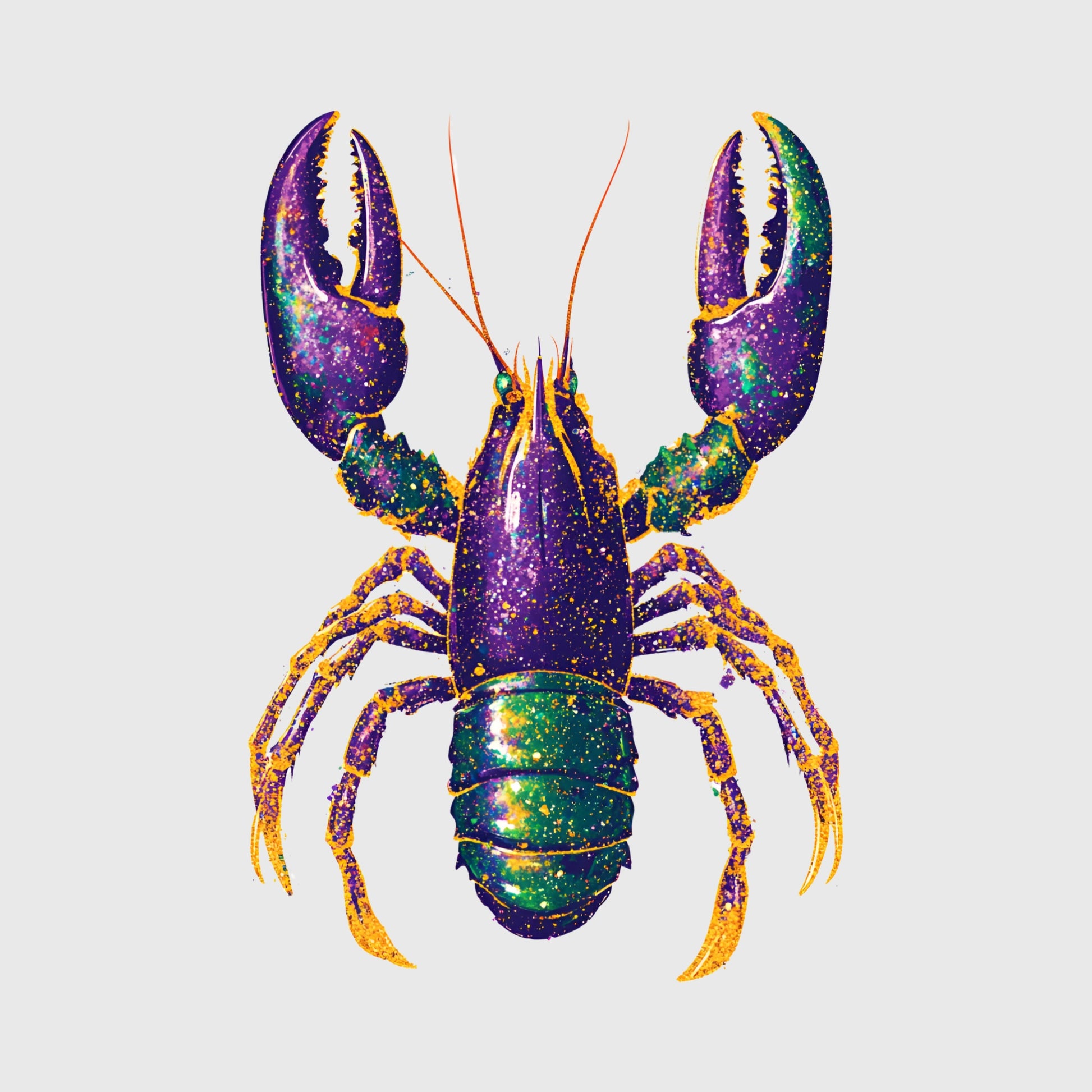 Celebrate Louisiana flair with this purple and green crawfish claw. Great for seafood lovers and Mardi Gras shirt designs alike.