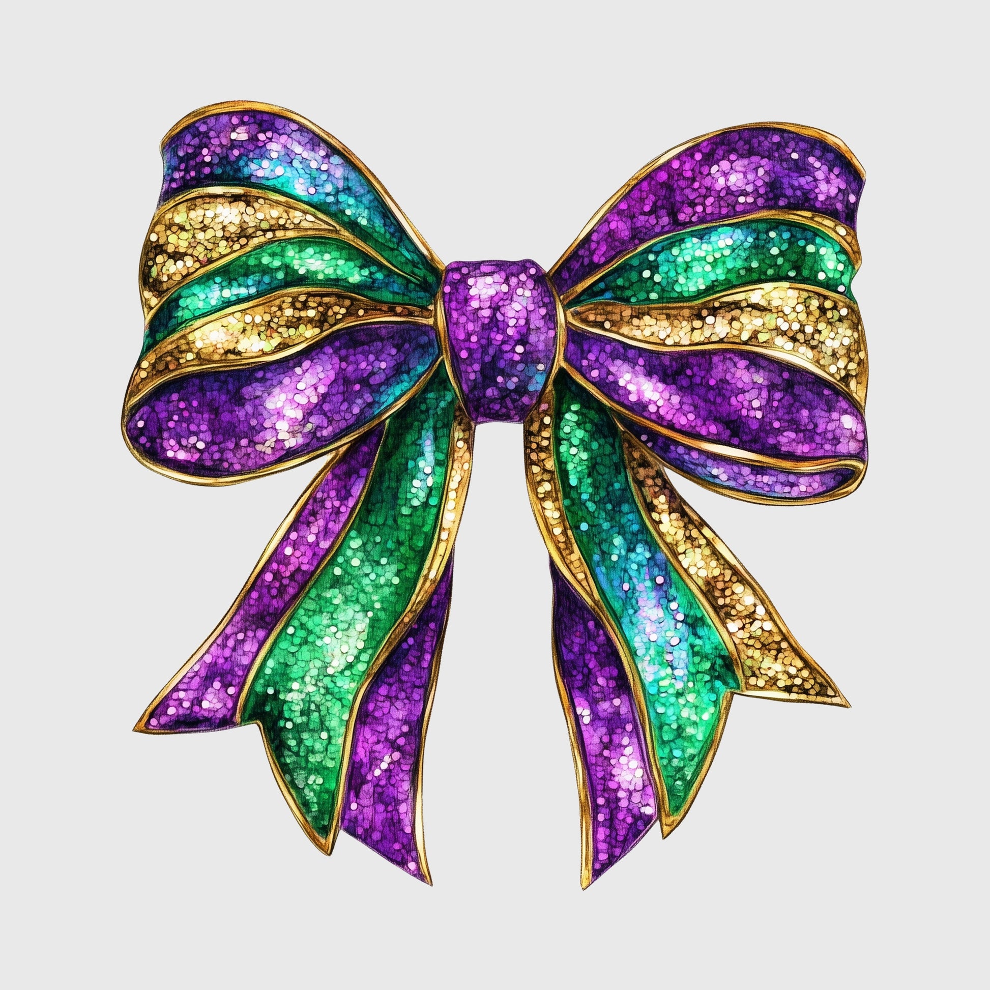 This shimmering bow in classic Mardi Gras colors adds a touch of glam to any shirt design. Great for bold, feminine Carnival looks.