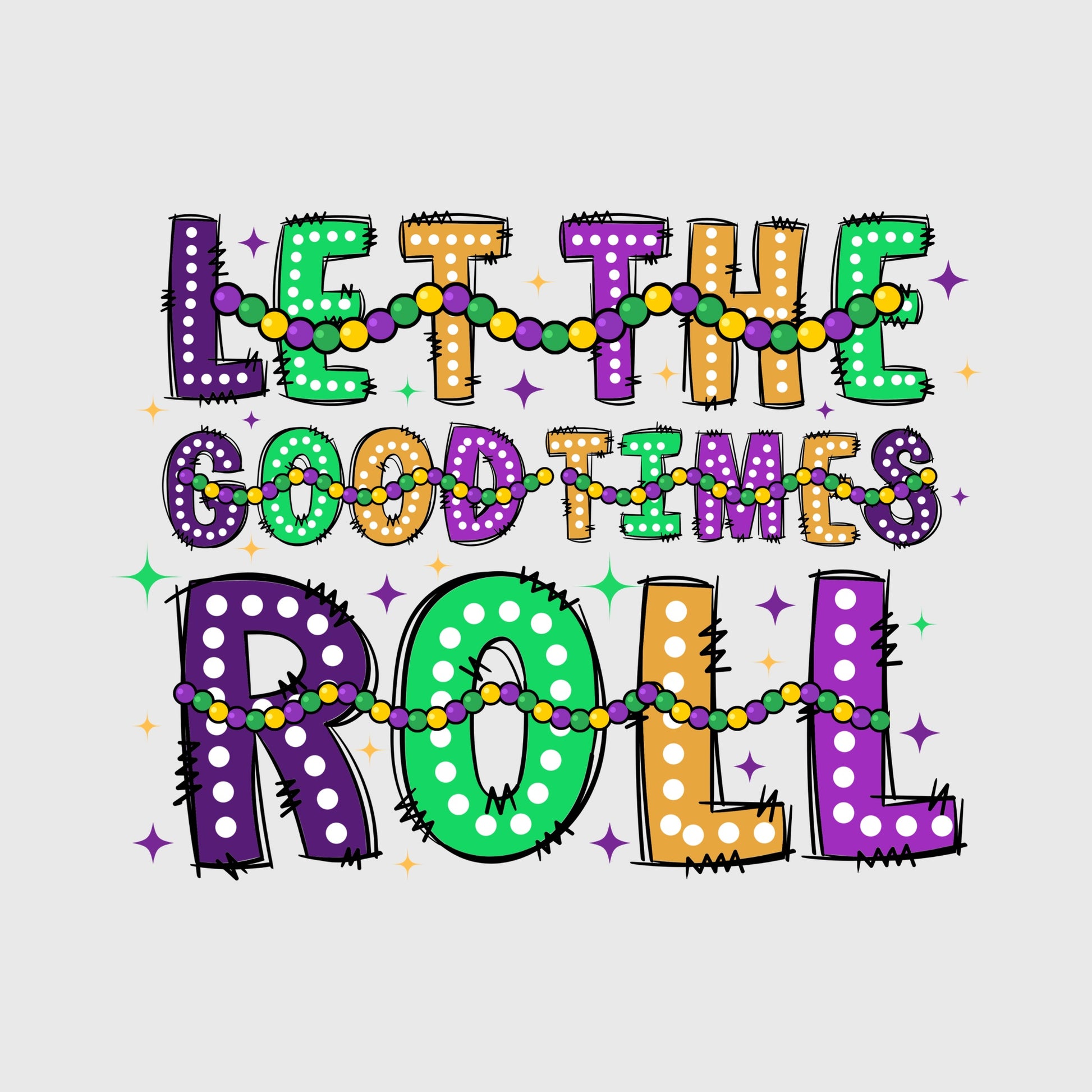 This festive t-shirt design features colorful Mardi Gras lettering wrapped in classic purple, green, and gold beads. Bold, playful, and full of sparkle—perfect for shirts that celebrate the spirit of Carnival with fun, flair, and classic parade energy.