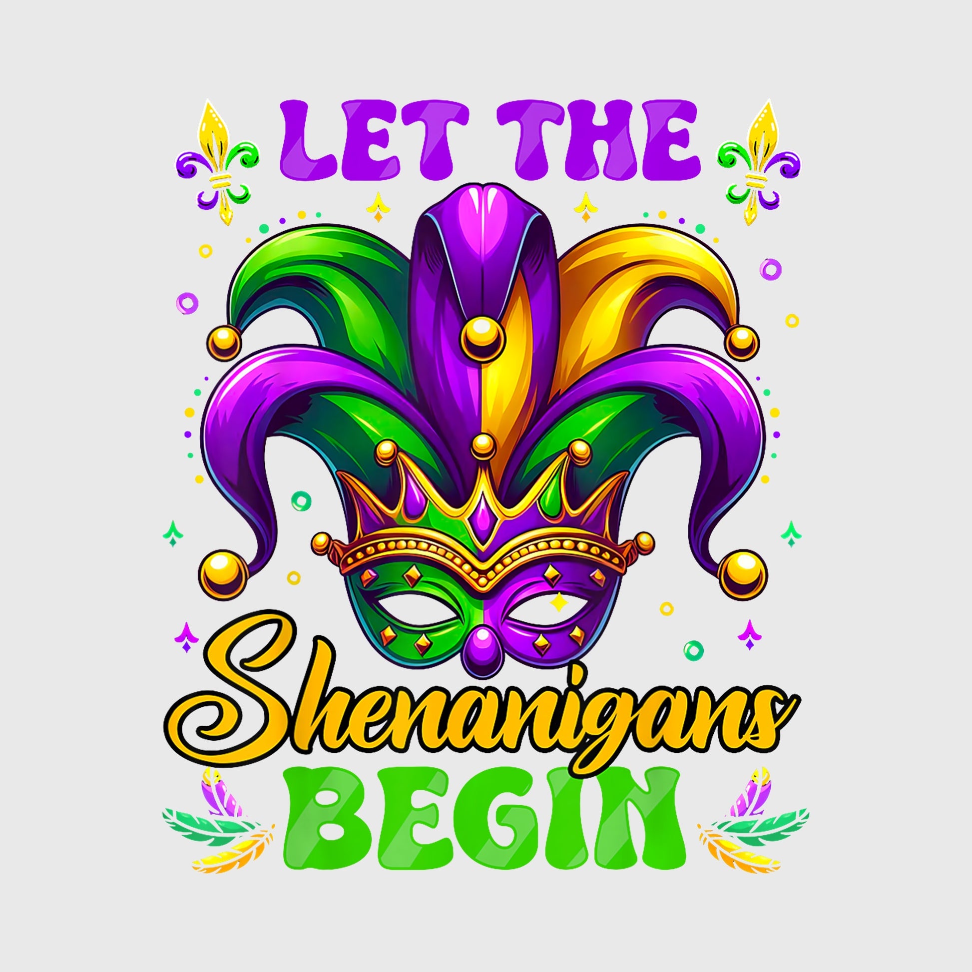 Minimalist and modern, this design adds color with a sleek Mardi Gras message. Perfect for versatile t-shirt designs.