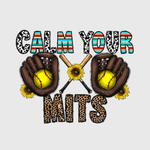 Humorous Softball Slogan Keep things lighthearted with the "Calm Your Mitts" design. Great for creating casual softball t-shirts with a playful twist, perfect for both players and fans.