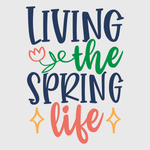 Let your clothes reflect the lively energy of the season with “Living the Spring Life.” This colorful design is perfect for light jackets, t-shirts, or even aprons, offering an inspiring message for anyone who loves the warmth and excitement that spring brings.