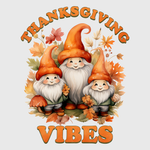 Spread the holiday spirit with this "Thanksgiving Vibes" transfer. This cute gnome family design is ideal for cozy t-shirt designs that celebrate Thanksgiving warmth and joy.