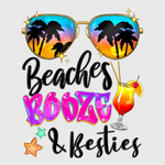 This playful, fun design featuring sunglasses and tropical drinks is perfect for a beach day outfit. Pair it with a casual tee or tank for a carefree summer look that celebrates sun and fun.