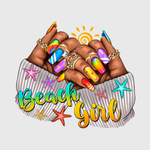 Celebrate the summer spirit with this design showcasing nails and tropical elements, perfect for relaxed t-shirts or hoodies. It brings a splash of personality to your beach-inspired wardrobe.
