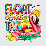 Shine this summer with the "Float and Glow" design, perfect for swimsuits or summer cover-ups. The vivid flamingo imagery is perfect for poolside fun, capturing the ultimate summer experience with bright colors and good vibes. It’s great for showcasing your love for sun and relaxation.