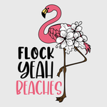 With a fun twist on the flamingo trend, "Flock Y'all" brings a cheeky summer vibe to t-shirts and casual tops. This design is perfect for any summer outfit, whether you're hanging out at the beach or strolling through the park with friends.