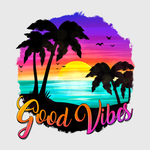 Let the positive energy flow with this "Good Vibes" design, perfect for a laid-back summer look. Ideal for t-shirts or beach cover-ups, the sunset background and tropical palms give this design a breezy, feel-good vibe. It’s all about capturing the essence of a perfect summer day.