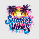 This vibrant "Summer Vibes" design is perfect for casual t-shirts, tanks, or beach cover-ups. Featuring a tropical sunset backdrop with palm trees, it brings the warmth of summer to your wardrobe. Ideal for relaxed vacation outfits or sunny days by the sea.