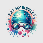 Challenge the competition with the playful "Eat My Bubbles" transfer. This whimsical design, featuring goggles and vibrant colors, is great for a tank top, swim bag, or training gear. Show off your fast pace with this fun and competitive design!