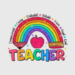 Show your love for teaching with this vibrant rainbow-themed design. Perfect for adding to casual t-shirts or accessories, it’s great for brightening up your everyday teacher gear. Wear it proudly and let your passion for education shine through with this cheerful design.