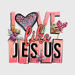 Celebrate love and faith with this uplifting "Love Like Jesus" design. Perfect for those who want to express their faith while celebrating Valentine’s Day, this transfer is ideal for t-shirts or church events. Spread the message of love, kindness, and faith with this beautiful design.