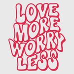 Spread positivity with this "Love More, Worry Less" transfer. The inspiring message is perfect for any casual Valentine’s Day outfit, from t-shirts to hoodies. This design encourages a stress-free, love-filled life, making it a great reminder to stay focused on what really matters.