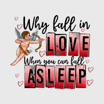 Why fall in love when you can fall asleep? This humorous design is perfect for those who prefer a cozy night in over romance. Ideal for pajamas or casual loungewear, this transfer brings a bit of fun to your Valentine’s Day attire.