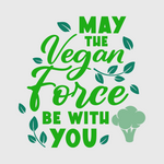 A fun, geeky design perfect for any vegan with a love for pop culture. Ideal for casual shirts or accessories, this message unites plant-based living with a bit of fandom flair.