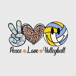 This cheerful design, combining peace signs, hearts, and volleyballs, is perfect for customizing T-shirts, hoodies, or accessories. Add a splash of color and love to your wardrobe with this fun design, ideal for both game day and casual outings.
