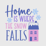 Bring the magic of winter home with the "Home is Where the Snow Falls" transfer. This charming design is perfect for hoodies or long-sleeve shirts, creating a cozy and festive vibe. Embrace the winter chill and add this design to your cold-weather fashion.