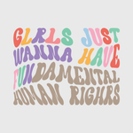 This playful "Girls Just Wanna Have Fundamental Rights" design brings fun into the fight for equality. It’s the perfect transfer for a casual t-shirt or hoodie, making a lighthearted yet powerful statement on women's rights.