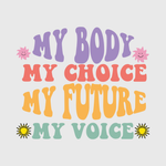 This empowering "My Body, My Choice, My Future" design speaks to the heart of women's autonomy. Whether on a hoodie or a tote, this transfer is a perfect way to advocate for reproductive rights and women’s futures.