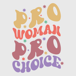 Celebrate the intersection of feminism and reproductive rights with this "Pro-Woman Pro-Choice" retro transfer. Designed for t-shirts and hoodies, this bold, colorful message will make a statement for anyone passionate about the right to choose.