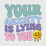 This bold "Your Anxiety is Lying to You" design helps spread awareness about the false narratives anxiety creates. Perfect for printed tees, it’s an encouraging reminder to push through the mental noise and stand strong.