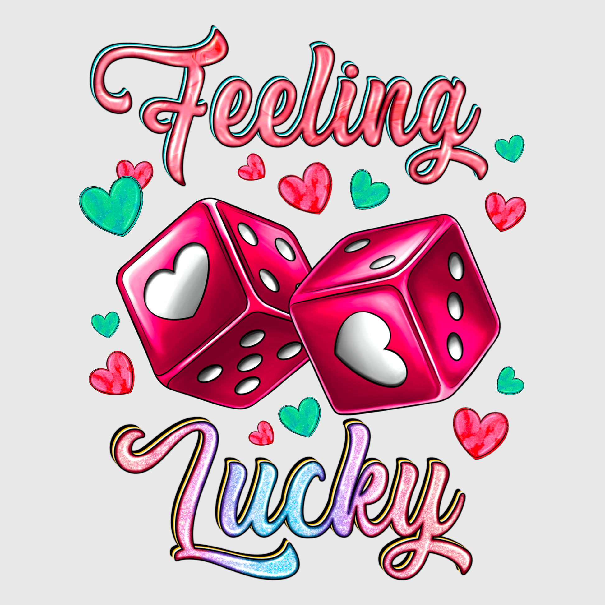 This charming "Feeling Lucky" design features adorable dice and heart elements, making it perfect for expressing how lucky you are in love this Valentine’s Day. Ideal for t-shirts, hoodies, or tote bags, this transfer will add a playful and heartfelt touch to your Valentine’s wardrobe.
